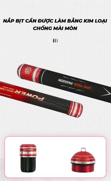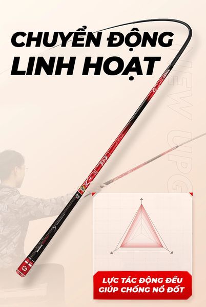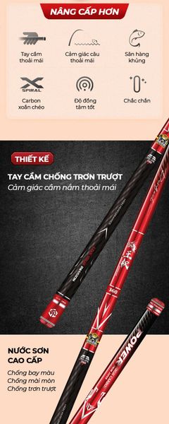 • - Được làm từ vật liệu carbon cao cấp xoắn chéo 8 lớp giúp cần khỏe, độ chịu tải cao và trọng lượng nhẹ