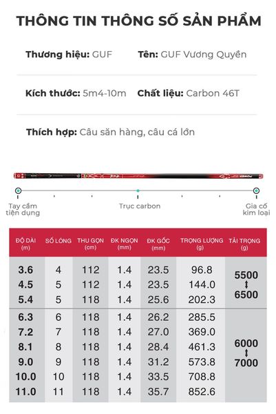• - Với trọng lượng nhẹ chỉ 202.3gr cho size cần 5m4
